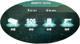 操作屏功能有开箱、SOS求助、日志、枪支、系统设置五大功能并能显示定位信号、4G信号、电池状态以及温湿度情况等功能。